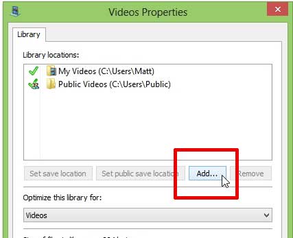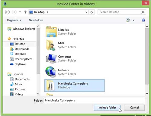 Windows 8'deki video kitaplığına klasör ekleme