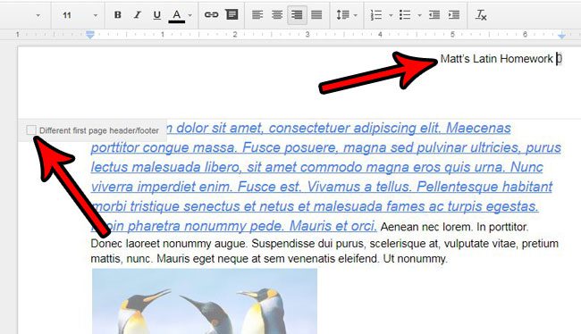 Neyse ki Google Dokümanlar başlığı düzenlemenize olanak tanır ve başka bir kelime işleme uygulamalarında bulunan aynı seçeneklerin çoğuna sahipsiniz. Aşağıdaki öğreticimiz, belgenizdeki her sayfanın üstünde görünmesi için başlığa bilgi ekleyerek size yol gösterecektir.