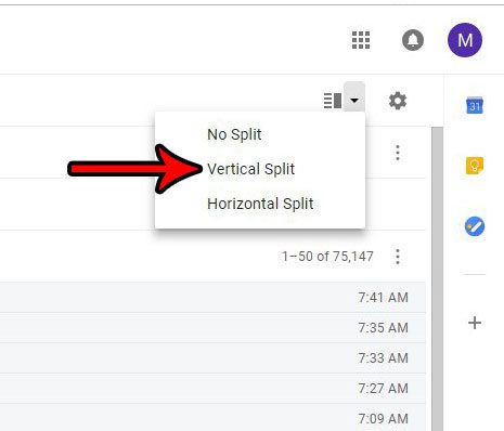 Bu makaledeki adımlar Google Chrome'un masaüstü sürümünde gerçekleştirildi, ancak diğer masaüstü tarayıcılarında da çalışacak. Bu değişikliği yaptıktan sonra, Gmail gelen kutunuz, kontrol etmek için kullandığınız herhangi bir bilgisayardaki herhangi bir tarayıcıdaki dikey bölünme ile görünecektir.