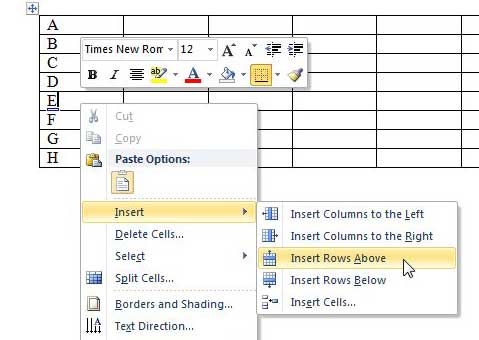 Neyse ki, mevcut tablolara satır eklemek mümkündür ve masanızdaki bir hücreyi veya satırı sağa tıkladığınızda bulunan kısayol menüsünden yapılabilir.