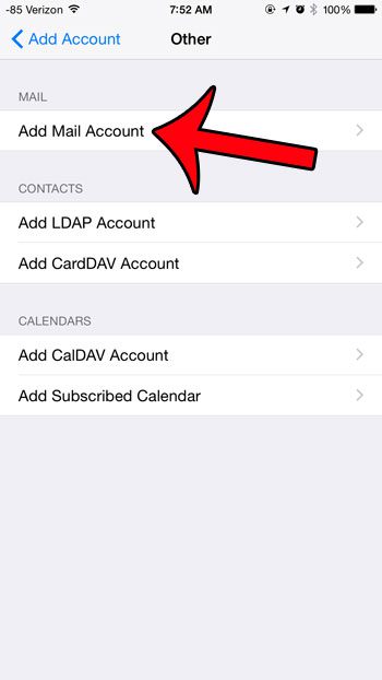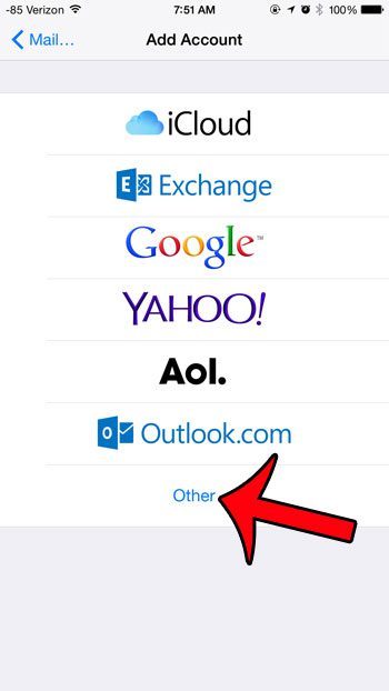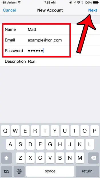 İPhone, Gmail ve Yahoo gibi sağlayıcıların e -posta hesapları için özel kurulum seçeneklerine sahiptir, ancak özellikle RCN hesapları için bir tane yoktur.