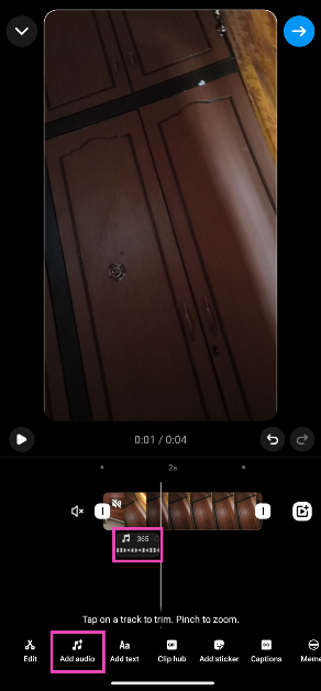 Adım 10:Ekleyebilirsiniz20 ses parçasıtek bir makaraya. Vurmakmavi ok simgesiİşiniz bittiğinde ekranın sağ üst köşesinde.