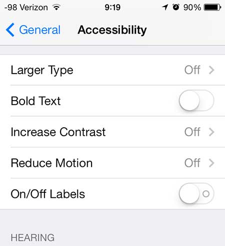 İOS'un önceki sürümleri, bir özelliği ne zaman kapattığınızı veya açtığınızı söylemeyi oldukça kolaylaştırdı. Bununla birlikte, iOS 7, bazı insanların bir özelliğin açık veya kapalı olup olmadığını bilmesini zorlaştırabilecek bazı tasarım seçenekleri yaptı.