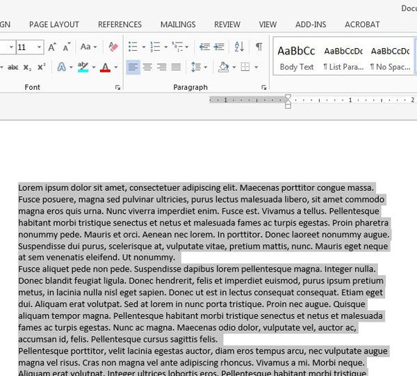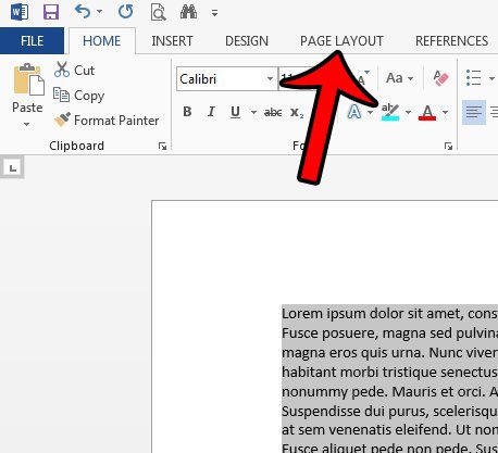 Bu makaledeki adımlar şu anda bir sütuna sahip bir belgeniz olduğunu varsayacaktır. Bu, Word 2013'teki bir belgenin varsayılan düzenidir. Aşağıdaki öğreticimiz, belgedeki geçerli tüm metnin nasıl seçileceğini, ardından belgenin düzenini iki sütuna bölünecek şekilde nasıl ayarlayacağınızı gösterecektir.