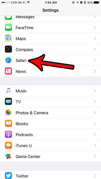 - Aşağı kaydırın ve seçinSafariseçenek.