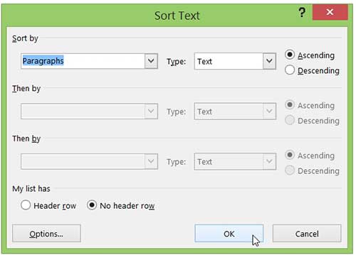 Neyse ki, Microsoft Word 2013, alfabetik çabalarınızı hızlandırmanıza gerçekten yardımcı olabilir.