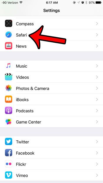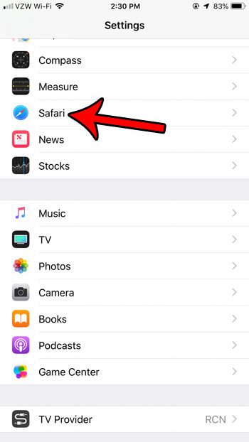 2. Adım: Aşağı kaydırın veSafariseçenek.