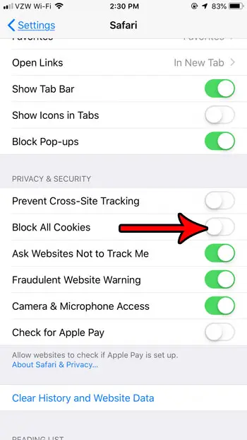 İPhone'unuzda Safari'de kurabiyelere giderek izin verebilirsiniz.Ayarlar> Safari> Gelişmiş>Sonra kapatTüm çerezleri engelle.
