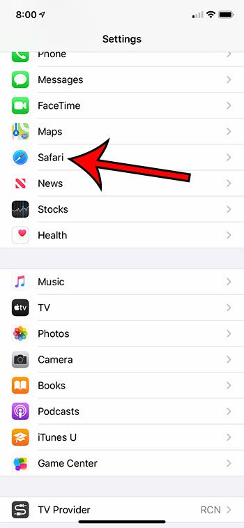 2. Adım: Aşağı kaydırın ve açınSafarimenü.