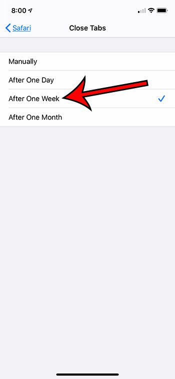 Bu makaledeki adımlar, iOS 13.1.2'de bir iPhone 11'de gerçekleştirildi. Bu ayarı etkinleştirmenin, bir hafta boyunca açık olduktan sonra açık sekmelerinizin otomatik olarak kapanmasına neden olacağını unutmayın. Bu makalede özellikle bu seçeneğe odaklansak da, bu sekmeleri bir gün veya bir ay sonra otomatik olarak kapatmayı da seçebilirsiniz.