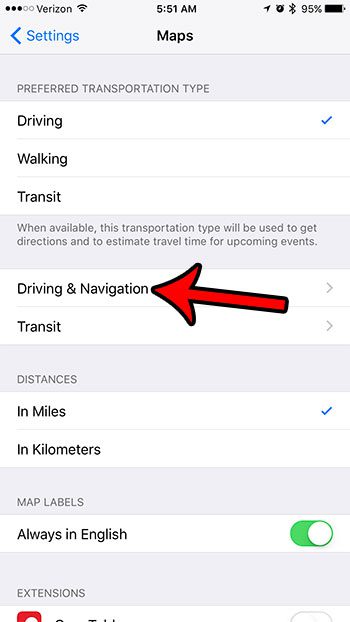3. Adım: seçinSürüş ve Navigasyonseçenek.