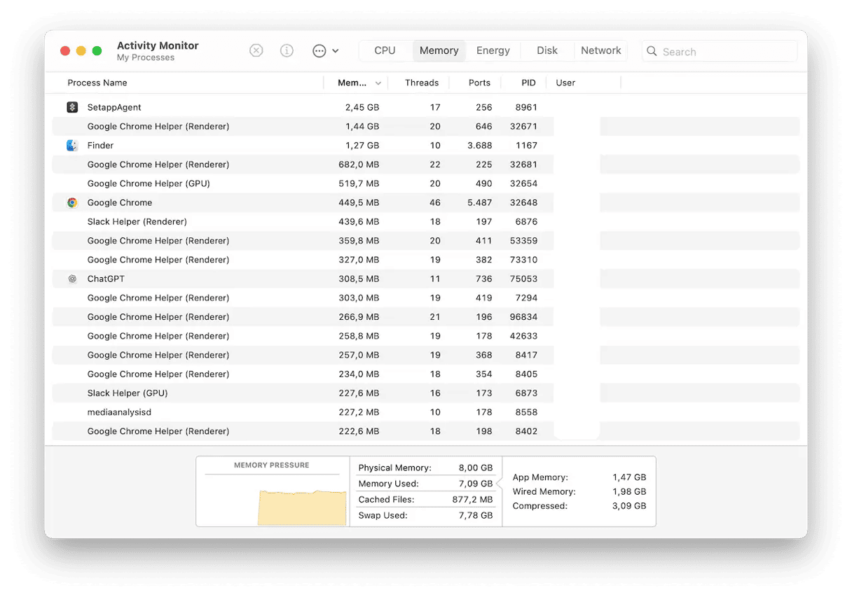 - Süreçler listesinde MacDefender, MacSecurity veya MacProtector'ı arayın.