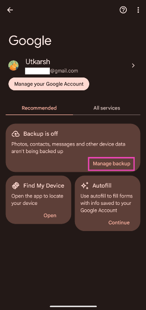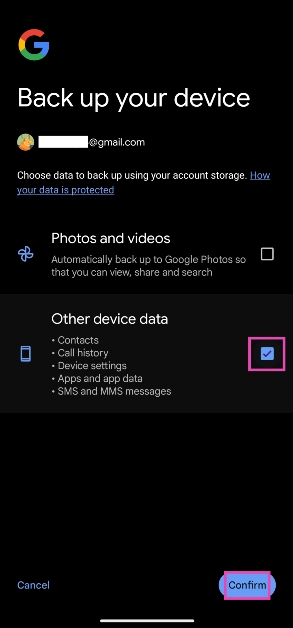 Gidip gelmekAyarlar> Google> Yedeklemeyi Yönetin, 'Diğer cihaz verileri' üzerine dokunun ve 'Onay'a basın.