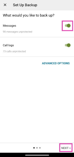 Adım 5:Geçiş anahtarını açınMesaj. Ayrıca yedeklemeyi de seçebilirsiniz.Çağrı günlükleri.