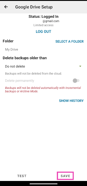 Android telefonunuzda yerel olarak oluşturulan tüm yedeklemeler Google Drive'da saklanır.