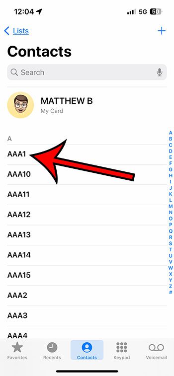 Telefon uygulaması yerine Kişiler uygulamasını açtıysanız, bu adımı atlayabilirsiniz.