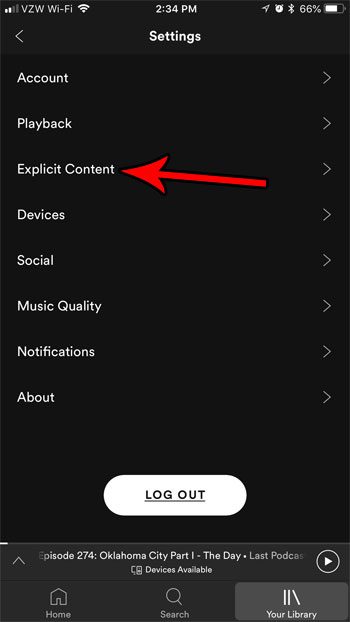 Bu makaledeki adımlar, bu makale yazıldığında mevcut olan Spotify uygulamasının en güncel sürümü kullanılarak iOS 11.3'te bir iPhone 7 Plus'ta gerçekleştirildi. Bu, Spotify uygulamasındaki bir ayarı değiştirecek, böylece açık olarak etiketlenen şarkılar arama sonuçlarında gri olacak. Bu ayarı değiştirdikten sonra, tekrar açmak için dokunmatik kimliğinizi sağlamanız gerekir. Bu ayar, çocuklarının ebeveynlerinin telefonunda müziklerini dinlemesine izin veren ve çocuğun yanlışlıkla açık bir şey duymadığından emin olmak isteyen bir ebeveyn için en uygun görünmektedir. Çocuğun kendi cihazı ise ve parmak izleri kaydedilirse bu ayarı değiştirilmesi çok kolaydır.