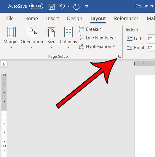 3. Adım: Küçük'i tıklayınSayfa kurulumusağ alttaki düğmeSayfa kurulumuŞeridin bölümü.