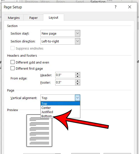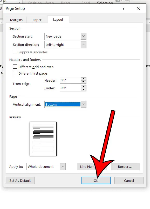Şimdi, belge içeriğinizin üst yerine sayfanın altında hizalandığını görmelisiniz.