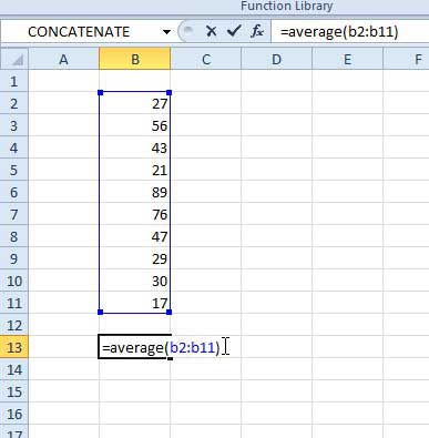 10 numaralı bir sütunun ortalamasını bulacağız ve formülü manuel olarak gireceğiz.