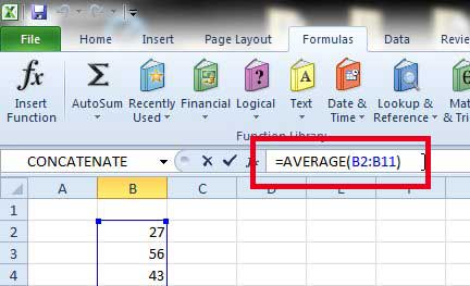 Bunu göz önünde bulundurarak, Excel 2010'da bir grup hücrenin ortalamasını nasıl elde edeceğinizi öğrenmek için aşağıdaki adımları izleyin.