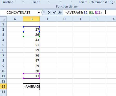 Ayrıca bir dizi hücrenin ortalamasını bulmakla sınırlı değilsiniz. Formülü düzenleyerek tek tek hücreleri belirleyebilirsiniz, böylece= Ortalama (xx, yy, zz). Serideki her virgülden sonraki alanı not edin.