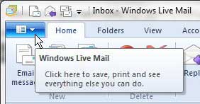 2. Adım: Maviyi tıklayınWindows Live MailPencerenin sol üst köşesinde sekme.
