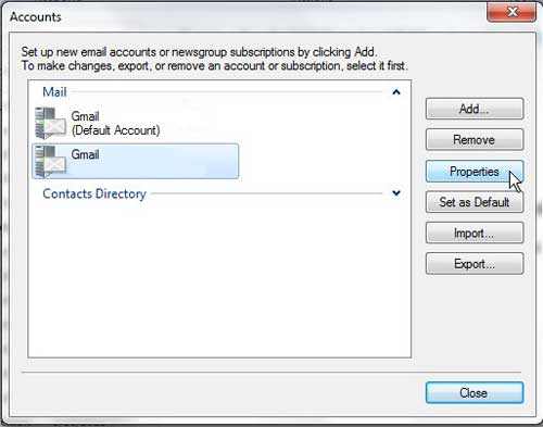 Adım 4: Pencerenin ortasındaki listeden düzenlemeniz gereken hesabı tıklayın, ardındanÖzelliklerdüğme.
