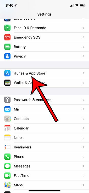 2. Adım: Aşağı kaydırın veiTunes & App Storeseçenek.
