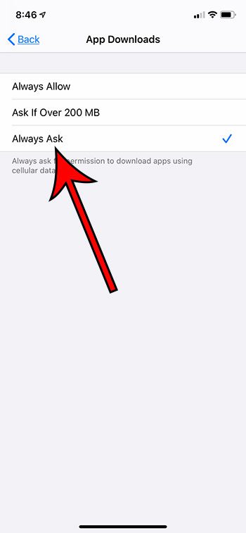 Aşağıdaki kılavuzumuz, iPhone'unuzdaki bir ayarı nasıl ayarlayacağınızı gösterecektir, böylece iPhone hücresel bir ağda olduğunuzda bir uygulama indirmeden önce her seferinde istenir.