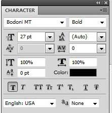Bu katmandaki tüm metninizin vurgulanması durumunda, isterseniz bazı evrensel değişiklikler yapmak için karakter panelindeki diğer araçları kullanabilirsiniz.