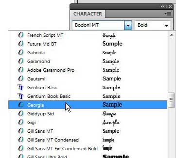 Adım 6: tıklayınYazı tipiaçılır menüKarakterPanel, ardından geçerli seçenek yerine kullanmak istediğiniz yazı tipini seçin.
