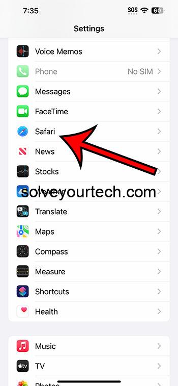 2. Adım: Aşağı kaydırın veSafariseçenek.