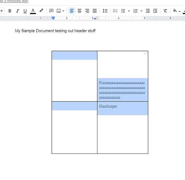 Ancak, tablonun varsayılan olarak göründüğünden memnun olmayabilirsiniz, bu da sizi Google Dokümanlar tablonuzun rengini değiştirmenin bir yolunu aramaya bırakabilir.