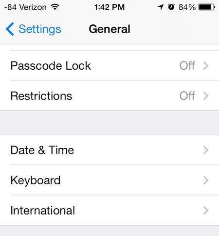 3. Adım: Aşağı kaydırın veUluslararasıseçenek.