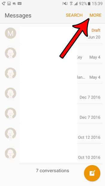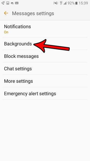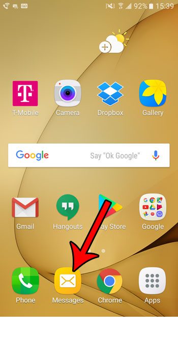 Bu makaledeki adımlar, Android Marshmallow işletim sistemi kullanılarak bir Samsung Galaxy On5 telefonunda gerçekleştirildi. Aşağıdaki adımları bitirdikten sonra, cihazınızdaki Mesajlar uygulamasında gördüğünüz mesajların arkasında yeni bir arka planınız olacak.