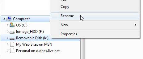 Windows 7'de bir bellek kartını yeniden adlandırma