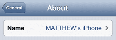 Genellikle iPhone 5 için varsayılan ad, adınız ve ardından “iPhone” kelimesi olacaktır. Örneğin, benimki varsayılan olarak “Matthew'in iPhone” dedi.