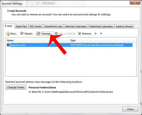 Adım 3: Giden bağlantı noktasını değiştirmek istediğiniz e -posta hesabını tıklayın, ardındanDeğiştirmekdüğme.