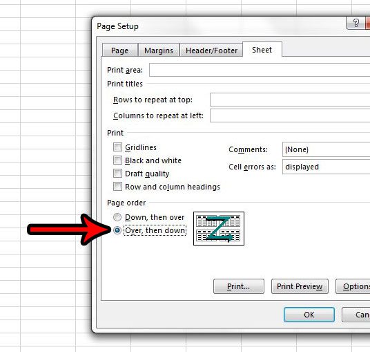 Bu davranışı değiştirmek isterseniz, e -tablonuzdaki sayfalar için yazdırma siparişini değiştirmek için aşağıdaki öğreticiyi izleyin.