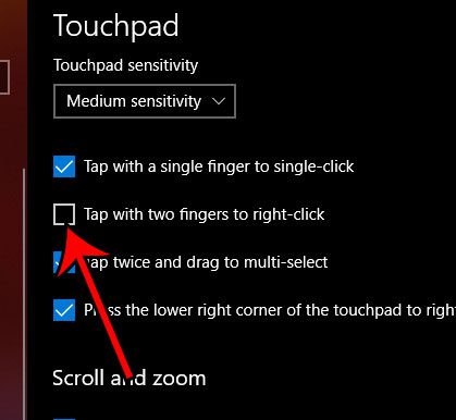 Dizüstü bilgisayarınızda sahip olduğunuz dokunmatik yüzey türüne bağlı olarak, sağ tıklamanın sağ tıklamasıyla sağ tıklayarak sağ tıklayabilmeniz gerekir. Yukarıdaki resimde dokunmatik yüzey menüsünde bir ayar olduğunu fark edeceksiniz ve onu dizüstü bilgisayarınızda da görmelisiniz.