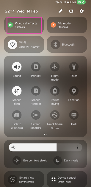 Video görüşmede olduğunuzda, durum çubuğundan aşağı kaydırın ve arka planı değiştirmek veya yüzünüze yumuşatma filtreleri uygulamak için Hızlı Ayarlar menüsünde 'Video Çağrı Efektleri'ne dokunun.