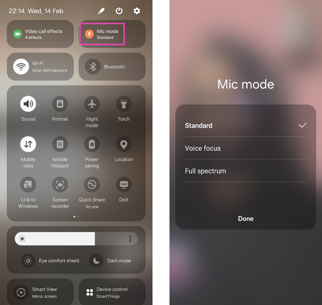 Adım 6:Durum çubuğundan tekrar kaydırın veMikrofon modu. Seçerek arka plan sesini iptal etmeyi seçebilirsinizSesli odaklanmaveya çevredeki tüm sesleri dokunarak aktarınTam spektrum.