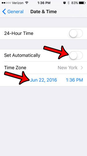 4. Adım: Sağdaki düğmeye dokununOtomatik olarak ayarlayınsonra tarihe dokunun.