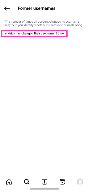 Instagram'da birinin önceki kullanıcı adını bulamasanız da, hesaplarını oluşturduktan sonra tutamaçlarını kaç kez değiştirdiklerini kontrol edebilirsiniz.