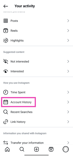 4. Adım:Aşağı kaydırın ve üzerine dokununHesap geçmişi.