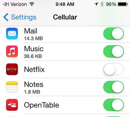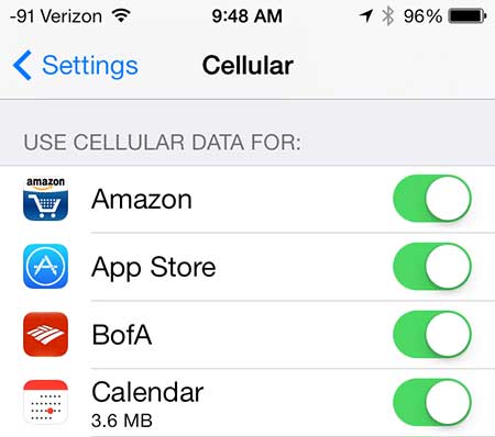 - S: Yanlışlıkla bir uygulama için verileri kapatırsam ne olur?C: Endişelenme! 'Cellular'a geri dönün, uygulamayı bulun ve anahtarı tekrar açın.