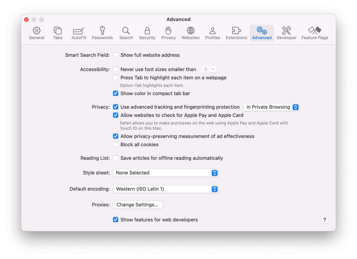 - Safari> Ayarlar> Gelişmiş'e gidin.