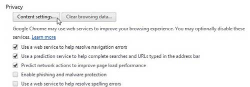 Adım 5: Tıklayınİçerik Ayarlarıiçindeki düğmeMahremiyetpencerenin bölümü.