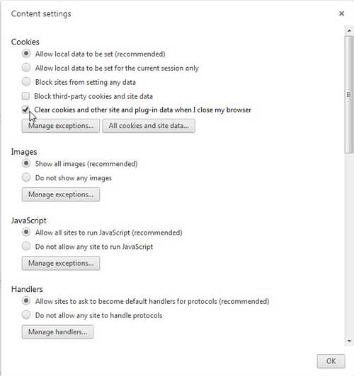 Örneğin, yapabilirsinizTarayıcıyı kapattığınızda Google Chrome'da çerezleri temizleyinayrıldıktan sonra tarayıcıda hiçbir veri saklanmamasını sağlayın.